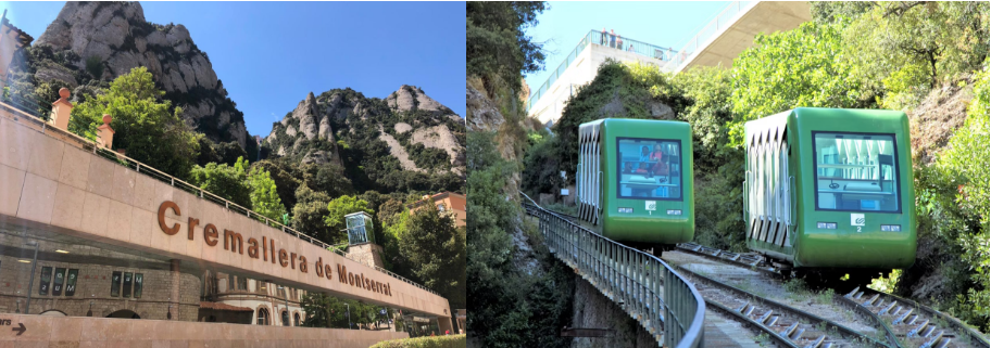 Nous nous dirigerons d'abord vers Monistrol de Montserrat, où se trouve la gare du chemin de fer à crémaillère (trajet à la montée inclus dans l’excursion), un moyen d’accéder à l’enceinte religieuse qui offre une vue spectaculaire sur le paysage montagneux.